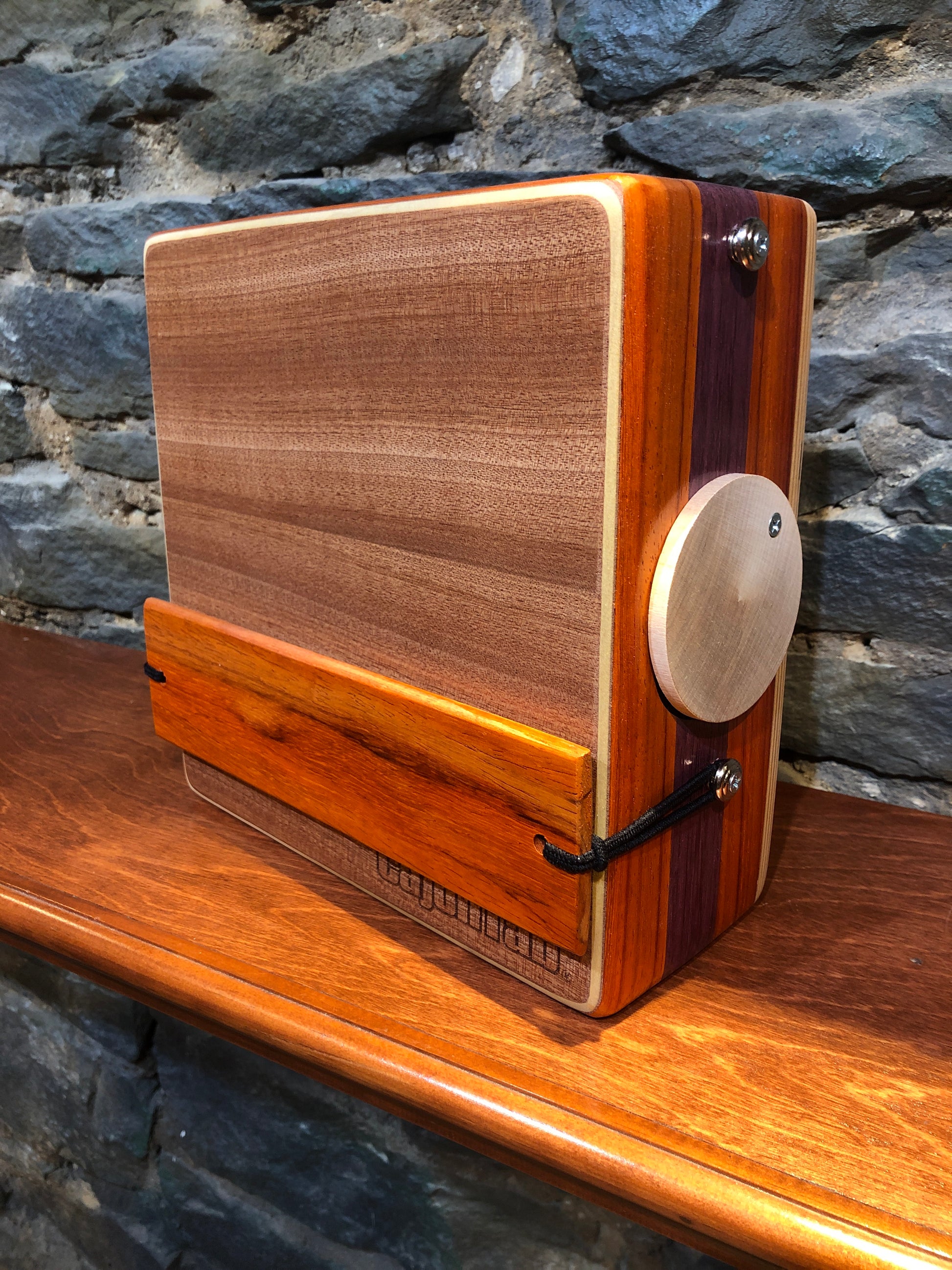 10” x 4” padauk and Purple Heart Pro Series CajonTab. Two of our most popular materials combine to form this colorful drum.